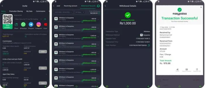 One thing I really liked was the referral earning program. It worked well for me, and I have already withdrawn around 5500 PKR through EasyPaisa. There was no complex condition. I simply claimed rewards and requested a withdrawal. I also shared a real screenshot as proof. Overall, my experience was decent, but careful spending is still important.